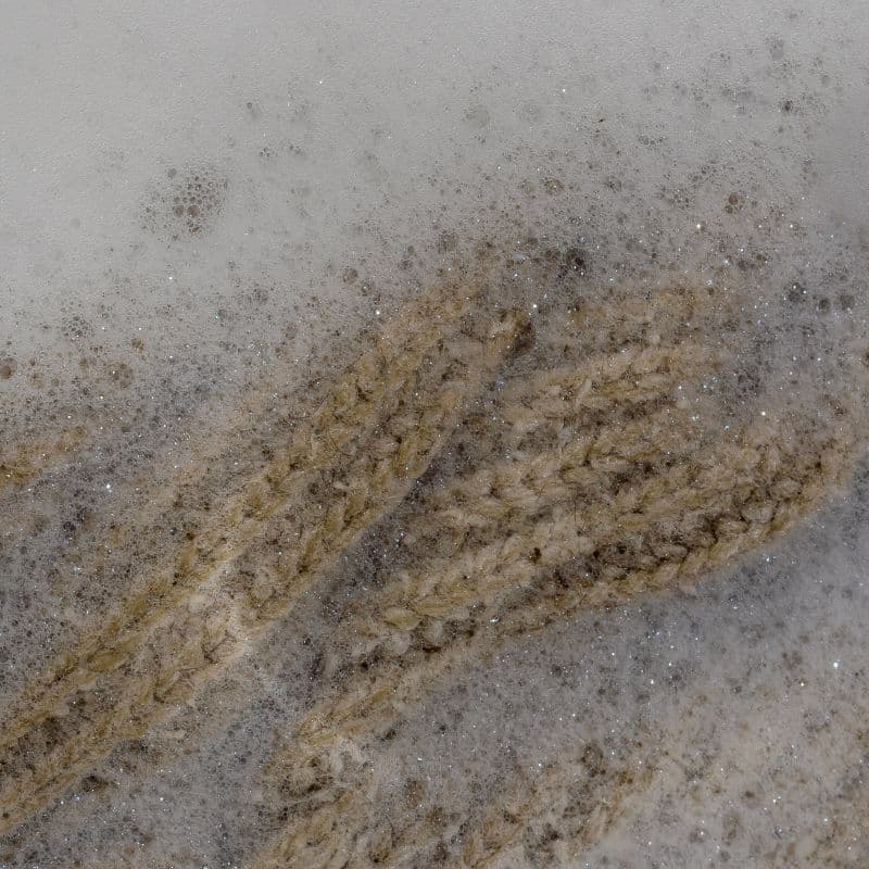 - Turn the garment inside out and immerse it in a basin of cold water with a spoonful of our gentle shampoo, massaging it for a few minutes. If there are any stains, gently dab the area with a white cloth soaked in diluted detergent, without ever rubbing;
